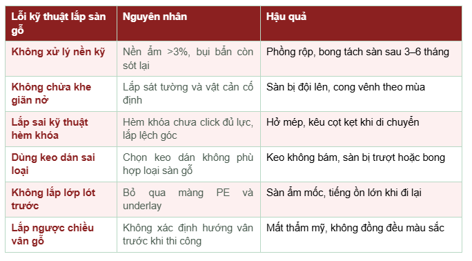 Những Lỗi Thường Gặp Trong Kỹ Thuật Lắp Sàn Gỗ